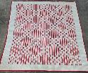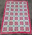 Lot 12: c.1920's hand-stitched red, beige, white & slight blue pattern quilt 72" x 67"