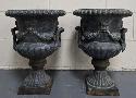 Lot 17: Pair of Victorian style cast iron garden urns 12 1/2" w 17 1/2" h