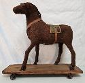 Lot 20: 19th century folk-art mohair horse on wheels pull toy 14" w 13" h