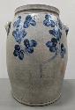 Lot 28: c.1850 stamped four gallon blue decorated doubled handled stoneware crock,
