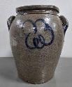 Lot 29: c.1850 stamped three gallon blue decorated double handled ovoid stoneware jar