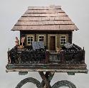 Lot 42: c.1890 folk-art log cabin model with tramp art stand 21" w 48" h 21" d