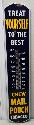 Lot 59: 1930's porcelain MAIL POUCH TOBACCO advertising thermometer, works 8" w 39" h