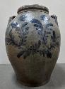 Lot 244: Rare c.1830 stamped EARNEST & COWLES blue decorated four gallon stoneware jar