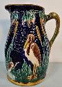 Lot 246: Large English Majolica pitcher with crane & cattails 12" h
