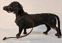 Lot 251: Antique German paper mache dachshund on wheels toy 12" w