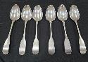 Lot 261: Set of six early 19th century Irish sterling silver serving spoons, 138 grams