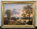 Lot 423: Large 19th century painting on canvas of cows, framed 46 1/2" x 36 1/2"