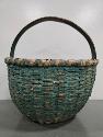 Lot 436: c.1920 hand-woven green painted splint belly basket with handle 16" w