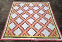 Lot 439: c.1920's pink, yellow & black hand-stitched Irish chain pattern quilt 83" x 84"