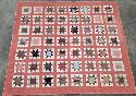 Lot 442: 19th century hand-stitched & quilted brown star patterned quilt 78" x 90"