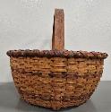 Lot 445: 19th century hand-woven, berry stained splint gathering basket with handle 10" w