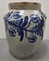 Lot 244: Rare c.1830 stamped EARNEST & COWLES blue decorated four gallon stoneware jar